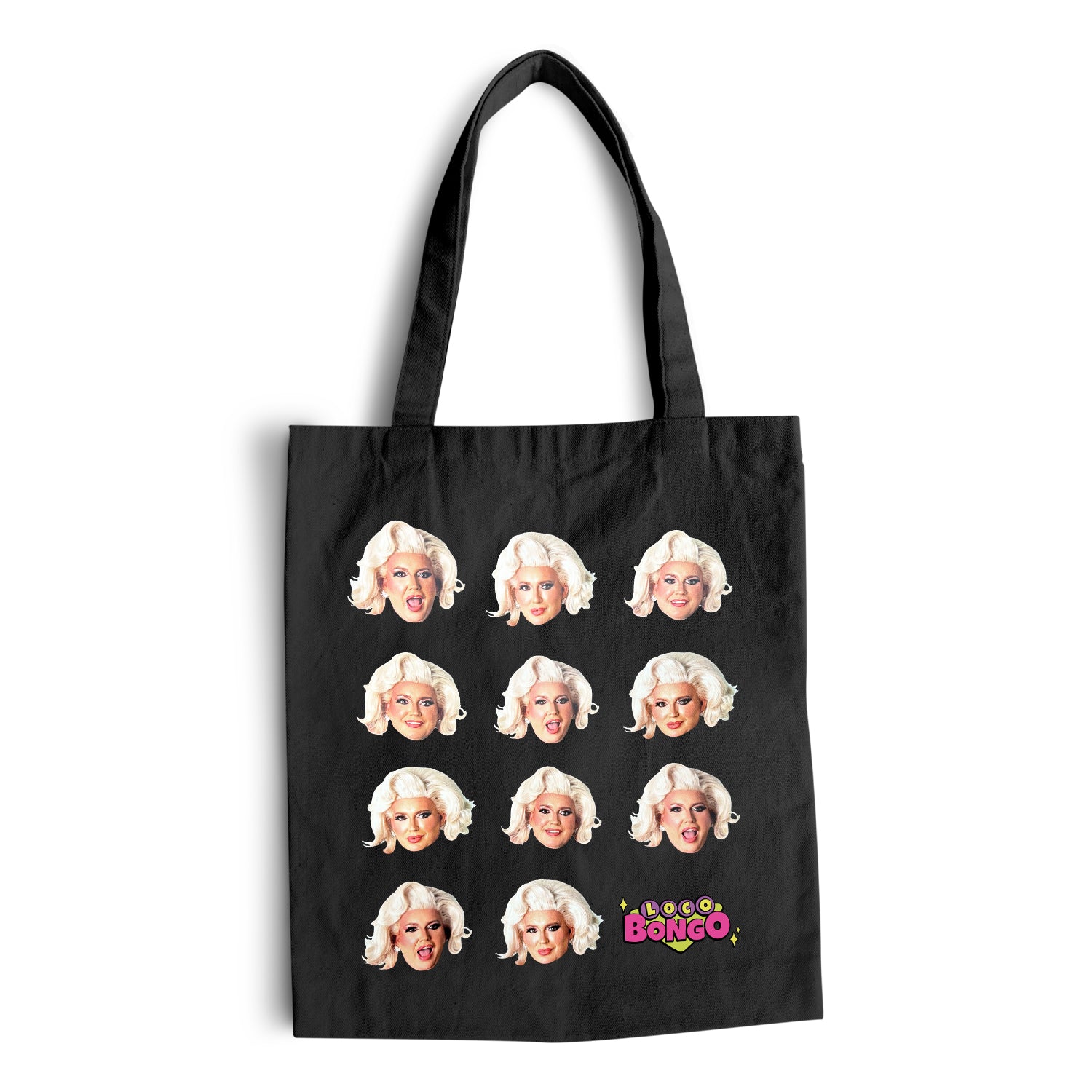 Prepárate para arrasar con esta tote bag que grita ¡FANTASIA!. Un diseño exclusivo con las mil caras de Xenon Spain, nuestra diva suprema de Loco Bongo, plasmadas en un estampado que es puro arte pop.